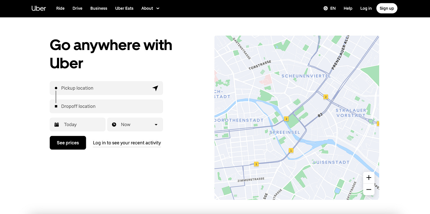 Here’s how the Uber Search Page currently looks.