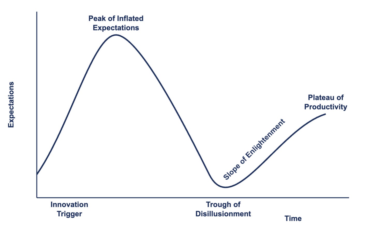 If we have to understand what's going on with all the noise around AI, which I believe is the most important technological advancement of our century, where we stand, and what's next, we have to zoom out and look at the Gartner hype cycle - a framework to understand the maturity of emerging technologies through five phases.